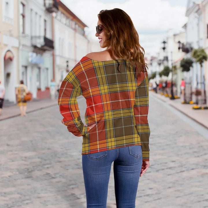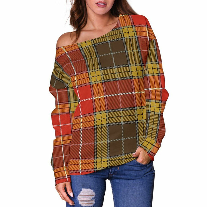 Buchanan Old Set Weathered Tartan Classic Women Off Shoulder Sweatshirt