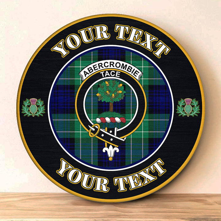 Abercrombie Tartan Crest Round Wooden Sign Thistle Memory Style