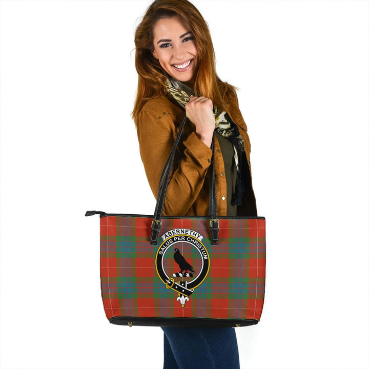 Abernethy Ancient Clan Badge Tartan Leather Tote Bag