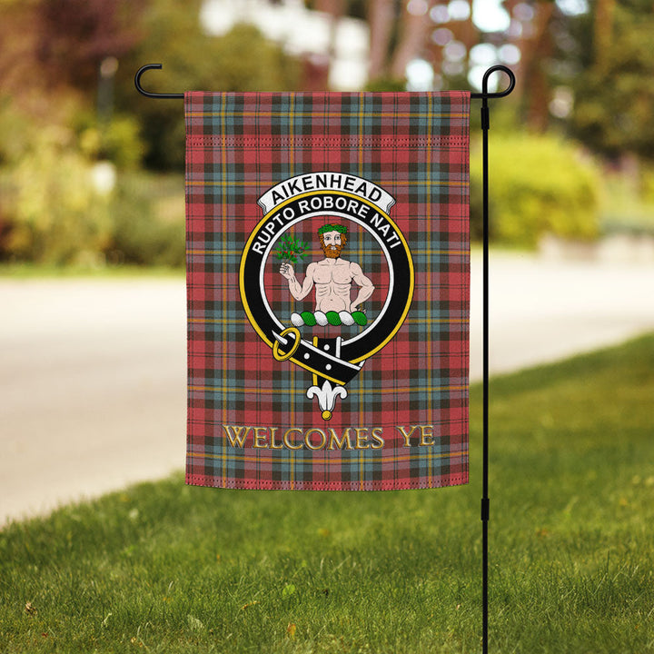 Aitken Weathered Clan Badge Tartan Garden Flag