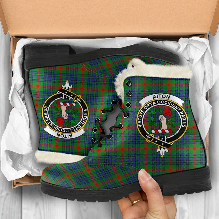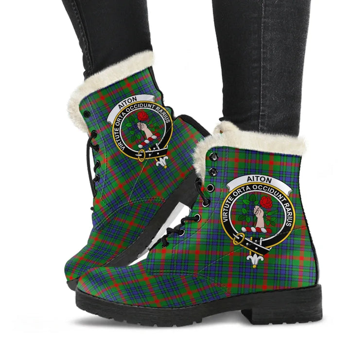 Aiton Tartan Classic Faux Fur Leather Boots