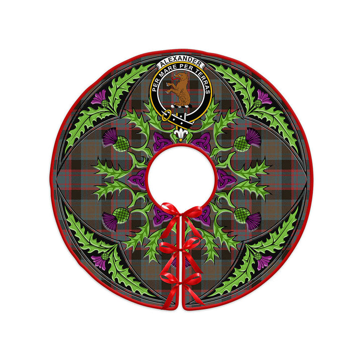 Alexander Hunting Weathered Clan Badge Tartan Christmas Tree Skirt Scottish Thistle Design