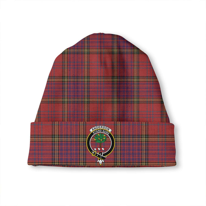 Anderson of Kinneddar Red Weathered Clan Badge Tartan Knitted Beanie