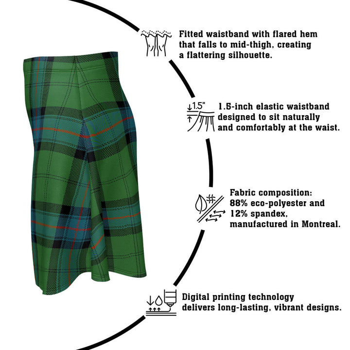Step out in heritage style with the Armstrong Ancient Clan Badge Tartan Flared Skirt. Featuring vivid tartan prints, a flattering high waist, and eco-friendly performance fabric, this skirt blends comfort and Scottish pride in every detail.