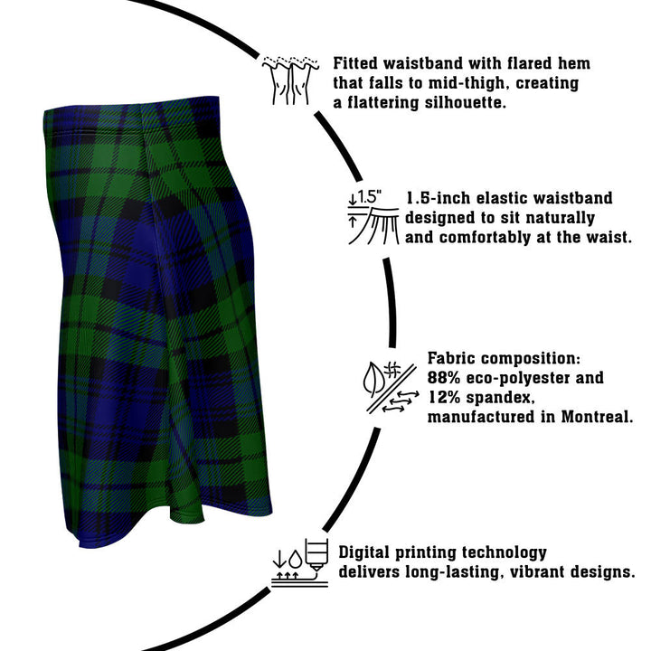 Step out in heritage style with the Bannatyne Clan Badge Tartan Flared Skirt. Featuring vivid tartan prints, a flattering high waist, and eco-friendly performance fabric, this skirt blends comfort and Scottish pride in every detail.