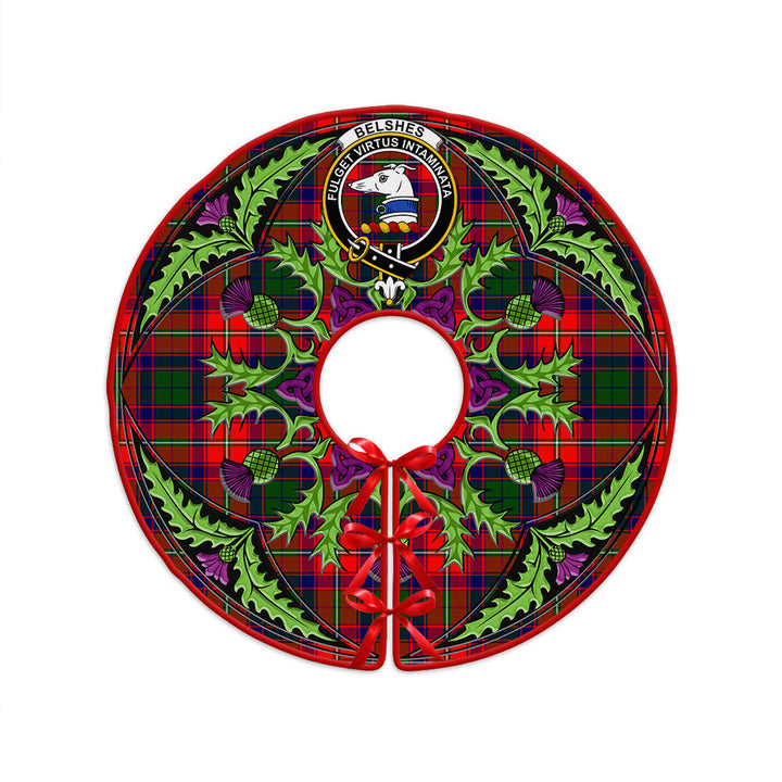 Belshes Clan Badge Tartan Christmas Tree Skirt Scottish Thistle Design