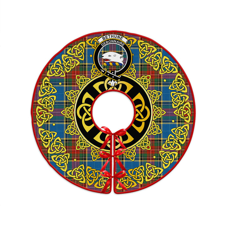 Bethune Ancient Clan Badge Tartan Christmas Tree Skirt Golden Celtic Heritage