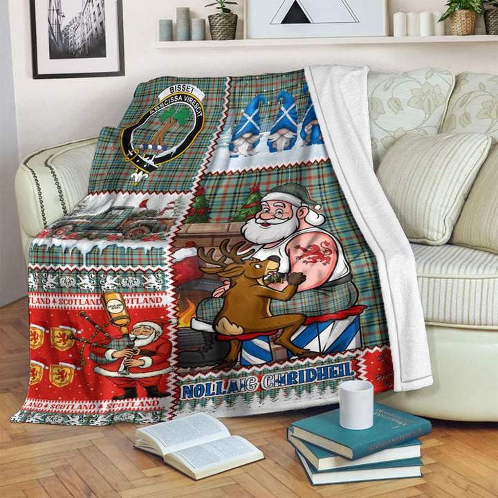Bisset Ancient Clan Badge Tartan Blanket Scotland Santa Tattoo Christmas Comic Patchwork Style