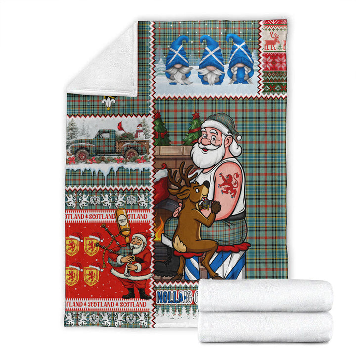 Snuggle up in style with the Bisset Ancient Clan Badge Tartan Blanket Scotland Santa Tattoo Christmas Comic Patchwork Style. Featuring a festive Santa Tattoo Patchwork design with Scottish tartan heritage, this blanket combines warmth, comfort, and holiday charm.