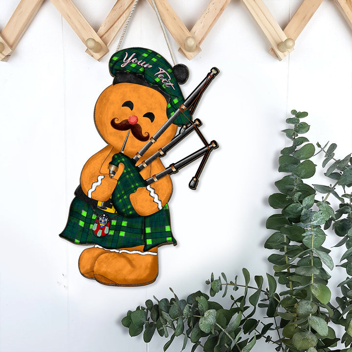 Blackwood Modern Crest Tartan Wooden Sign Gingerbread Bagpipe Personalized