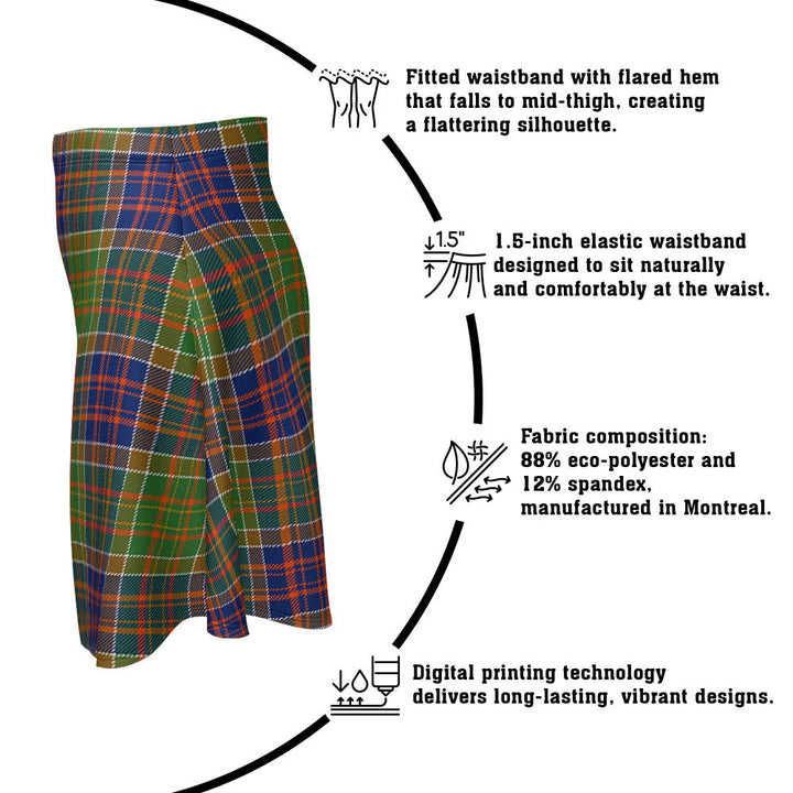 Step out in heritage style with the Bowie Modern Clan Badge Tartan Flared Skirt. Featuring vivid tartan prints, a flattering high waist, and eco-friendly performance fabric, this skirt blends comfort and Scottish pride in every detail.