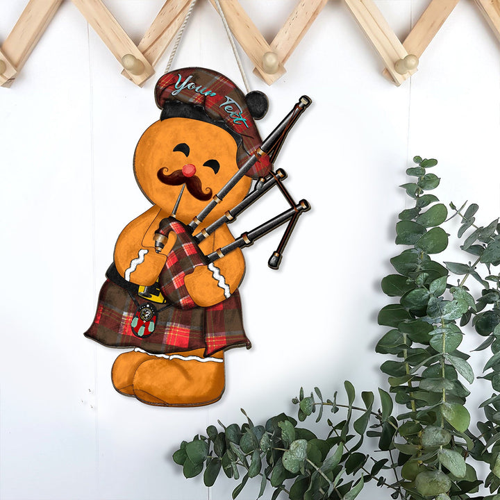 Brisbane Weathered Crest Tartan Wooden Sign Gingerbread Bagpipe Personalized