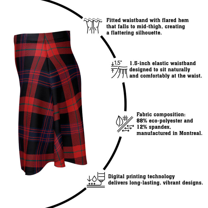 Step out in heritage style with the Brown (Broun) Modern Clan Badge Tartan Flared Skirt. Featuring vivid tartan prints, a flattering high waist, and eco-friendly performance fabric, this skirt blends comfort and Scottish pride in every detail.