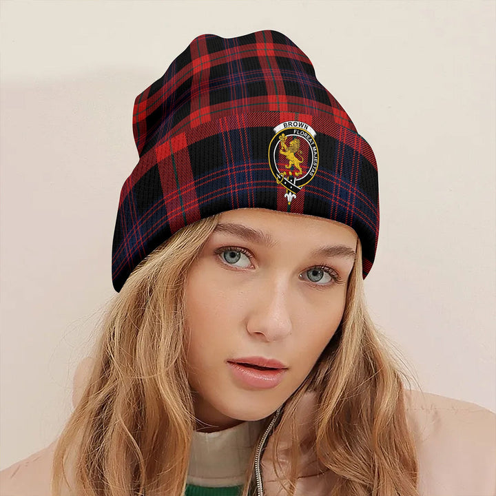 Brown (Broun) Modern Clan Badge Tartan Knitted Beanie