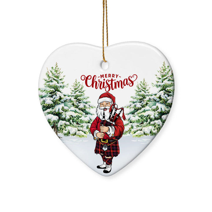 Add a touch of heritage to your celebrations with the Brown (Broun) Modern Tartan Ceramic Ornament Santa. Featuring a festive Scottish Santa Claus Bagpipe design, this ornament is the perfect keepsake for decorating your home or gifting to loved ones.