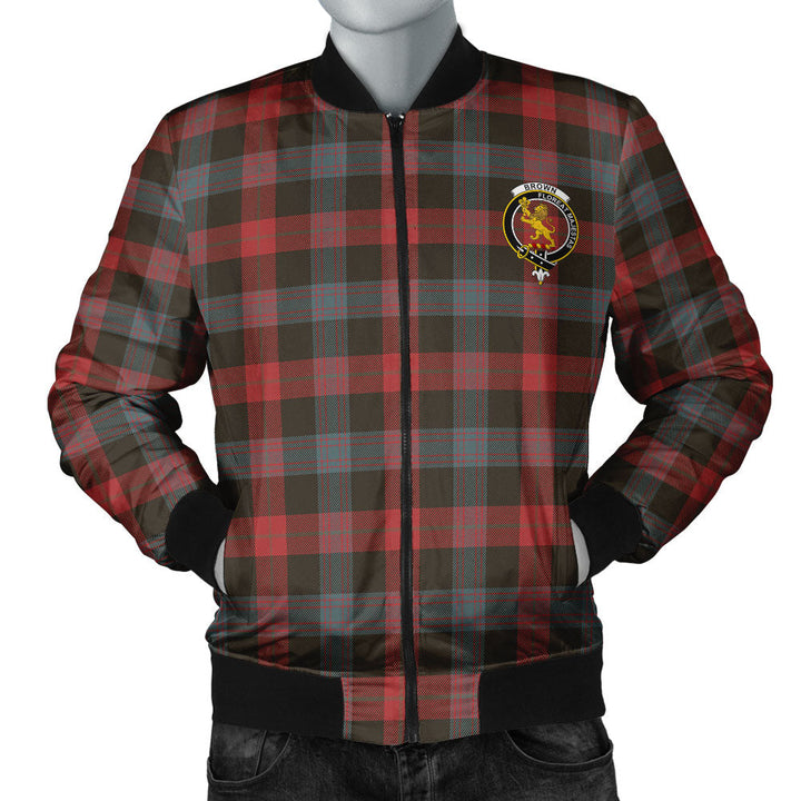 Brown (Broun) Weathered Clan Badge Tartan Bomber Jacket