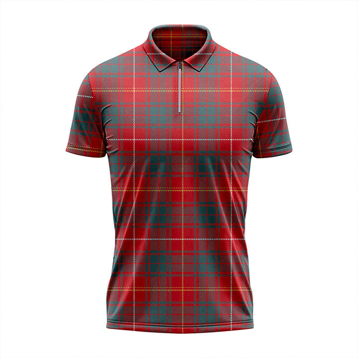 Bruce Weathered Tartan Classic Lapel Zip Short Sleeve Polo