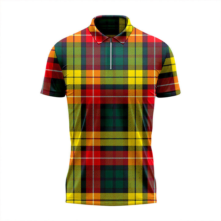 Buchanan Modern Tartan Classic Lapel Zip Short Sleeve Polo