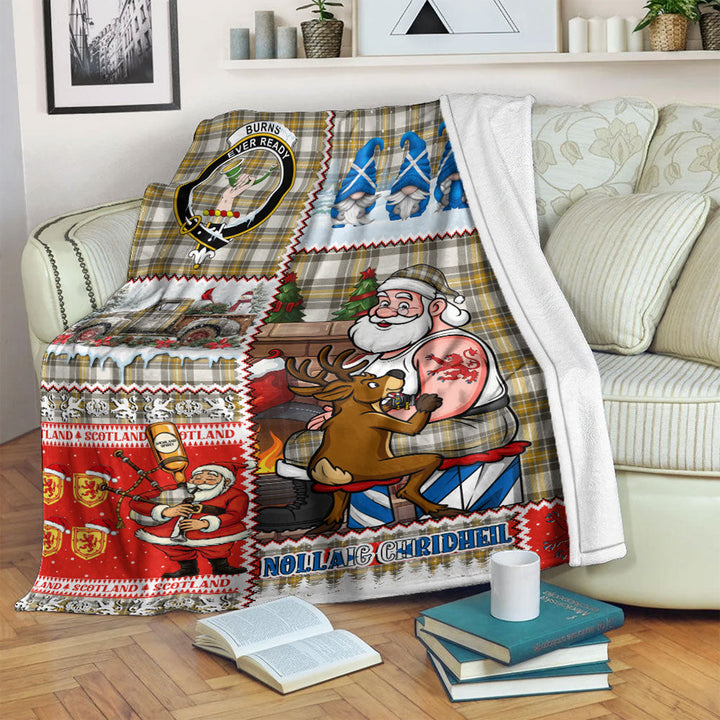 Burns Ancient Clan Badge Tartan Blanket Scotland Santa Tattoo Christmas Comic Patchwork Style