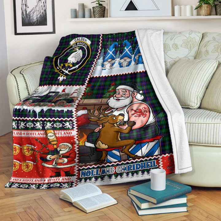 Calder Clan Badge Tartan Blanket Scotland Santa Tattoo Christmas Comic Patchwork Style