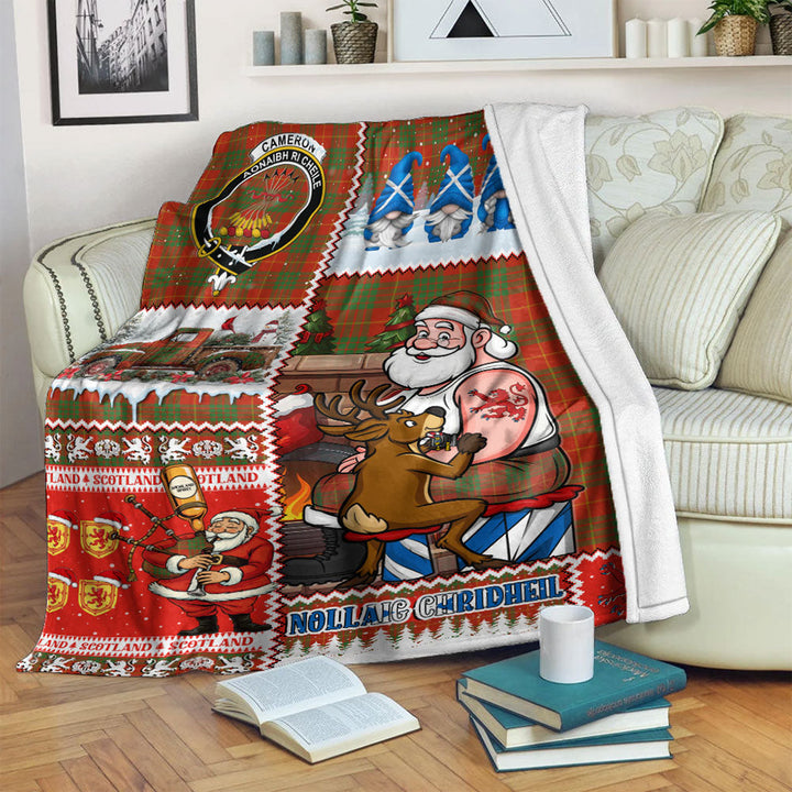 Cameron Ancient Clan Badge Tartan Blanket Scotland Santa Tattoo Christmas Comic Patchwork Style