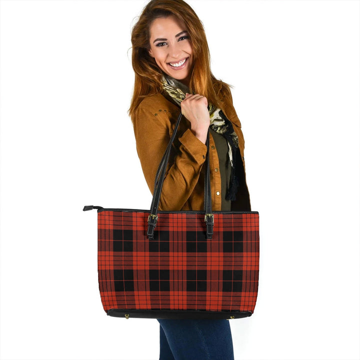 Cameron Black - Red Ancient Tartan Leather Tote Bag