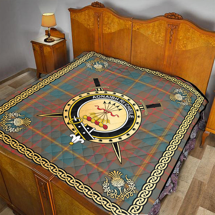Cameron of Lochiel Hunting Weathered 2 Clan Badge Tartan Premium Quilt Celtic Shield