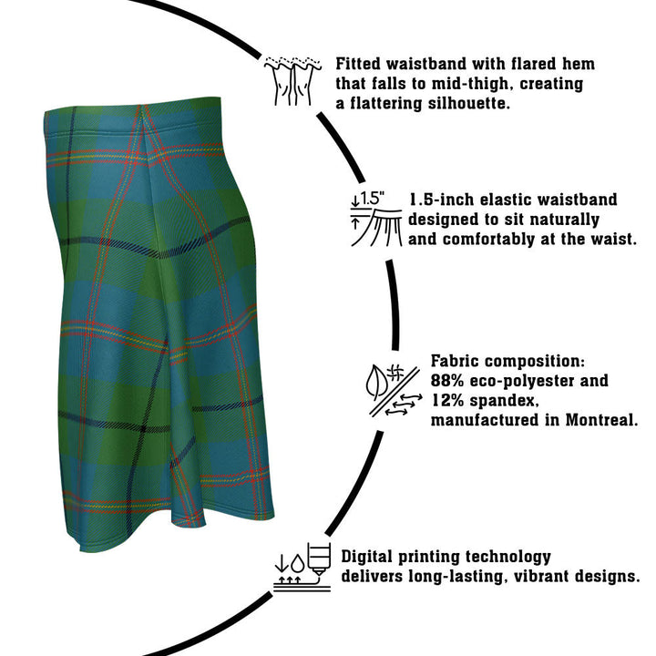 Step out in heritage style with the Carmichael Ancient Clan Badge Tartan Flared Skirt. Featuring vivid tartan prints, a flattering high waist, and eco-friendly performance fabric, this skirt blends comfort and Scottish pride in every detail.
