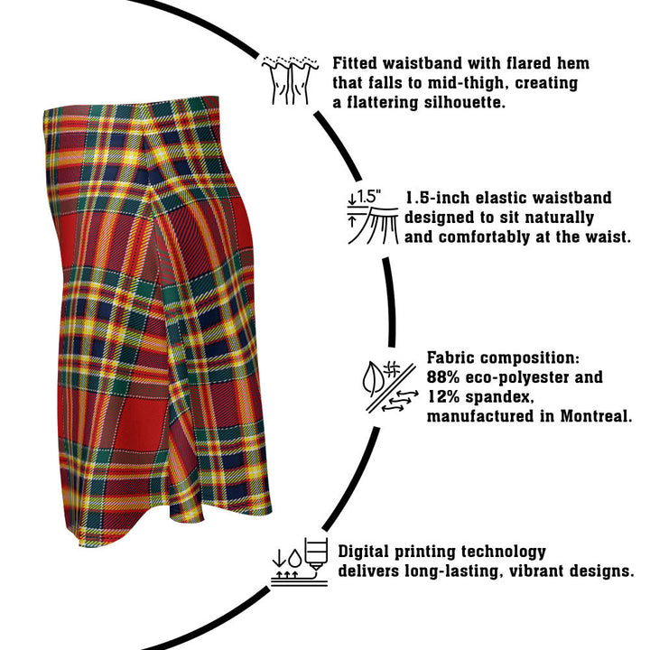 Step out in heritage style with the Chattan Modern Clan Badge Tartan Flared Skirt. Featuring vivid tartan prints, a flattering high waist, and eco-friendly performance fabric, this skirt blends comfort and Scottish pride in every detail.