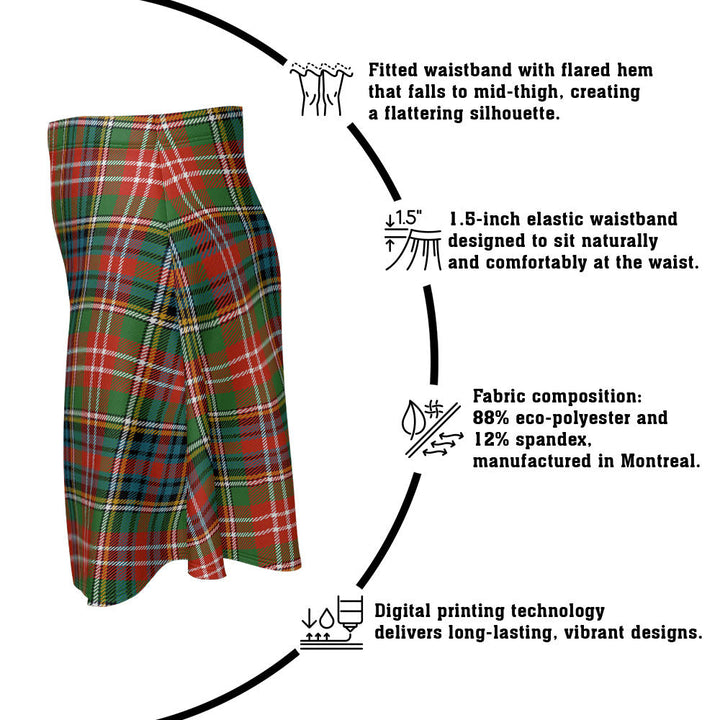 Step out in heritage style with the Christie Ancient Clan Badge Tartan Flared Skirt. Featuring vivid tartan prints, a flattering high waist, and eco-friendly performance fabric, this skirt blends comfort and Scottish pride in every detail.
