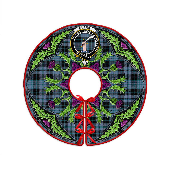 Clark (Clergy) Ancient Clan Badge Tartan Christmas Tree Skirt Scottish Thistle Design