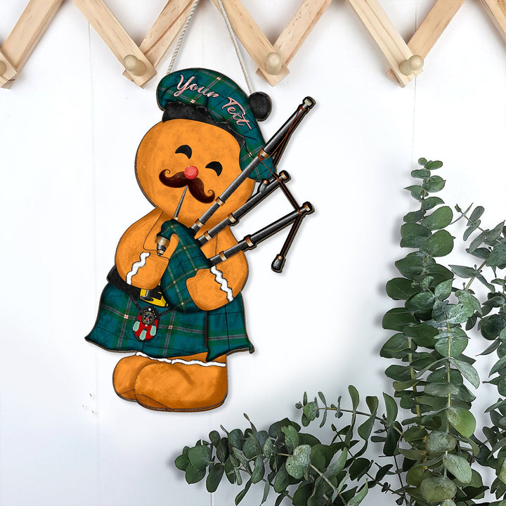 Cleland Ancient Crest Tartan Wooden Sign Gingerbread Bagpipe Personalized