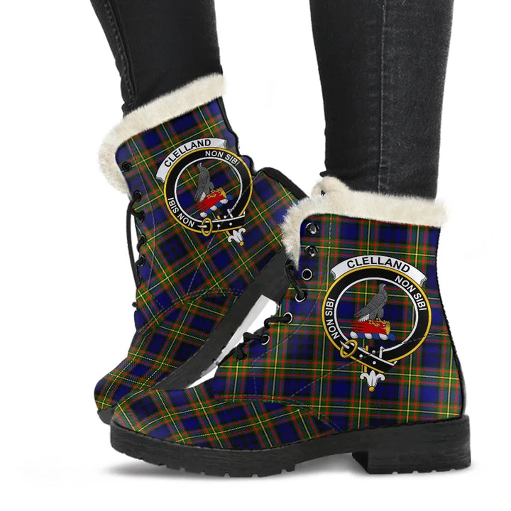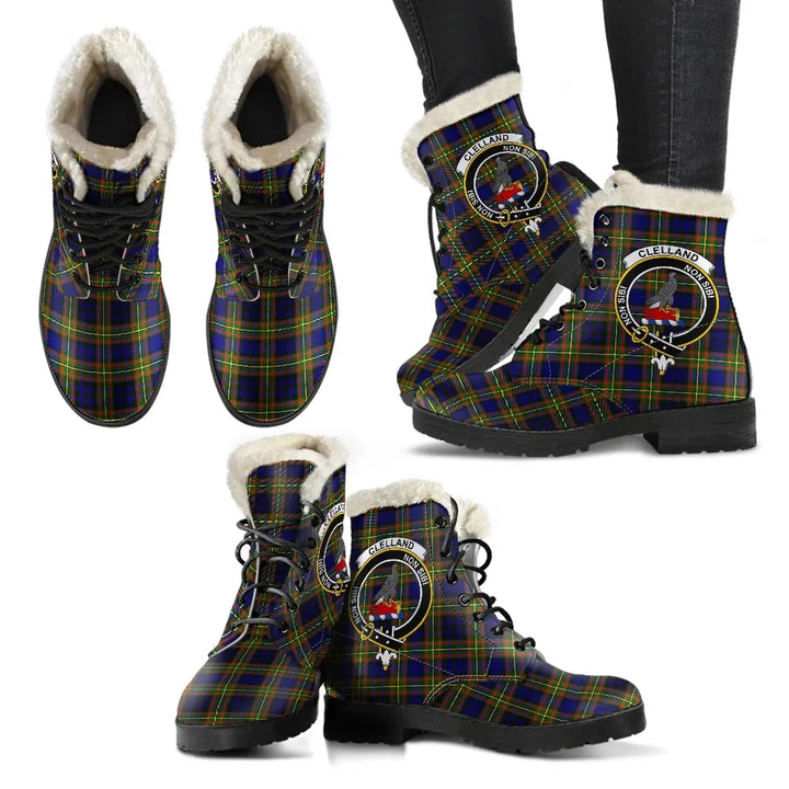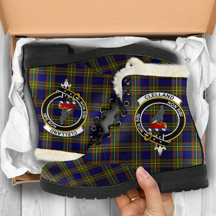 Clelland Modern Tartan Classic Faux Fur Leather Boots