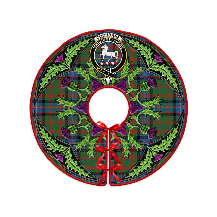 Cochrane (Cochran) Ancient Clan Badge Tartan Christmas Tree Skirt Scottish Thistle Design
