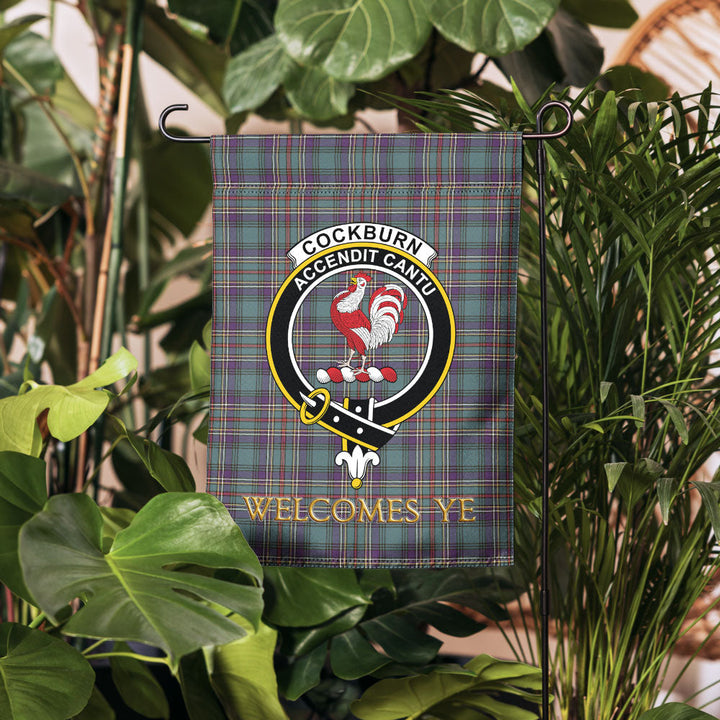 Cockburn (Coburn) Weathered Clan Badge Tartan Garden Flag