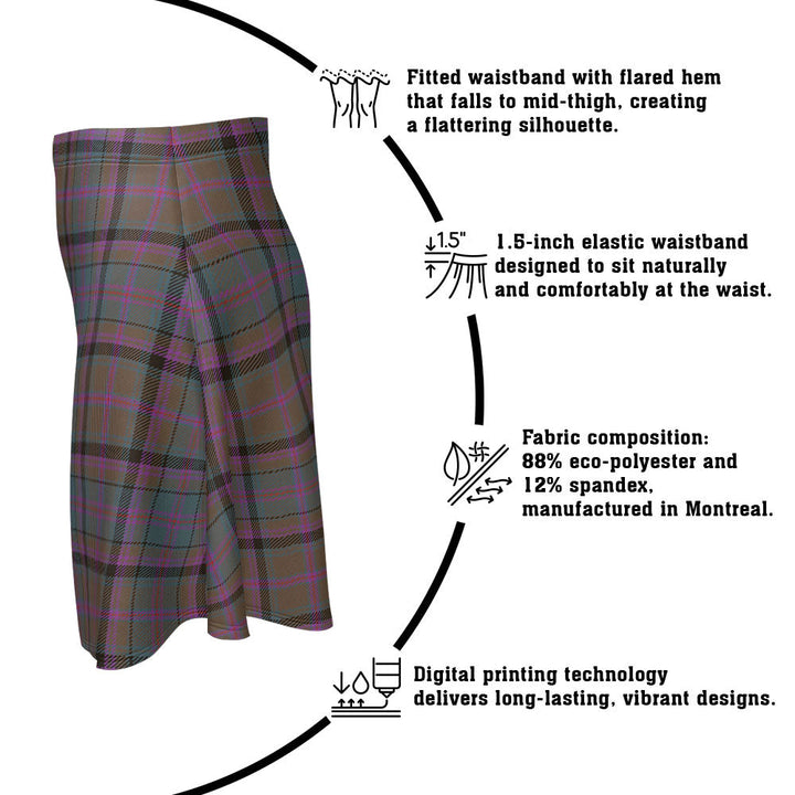 Step out in heritage style with the Cooper Weathered Clan Badge Tartan Flared Skirt. Featuring vivid tartan prints, a flattering high waist, and eco-friendly performance fabric, this skirt blends comfort and Scottish pride in every detail.