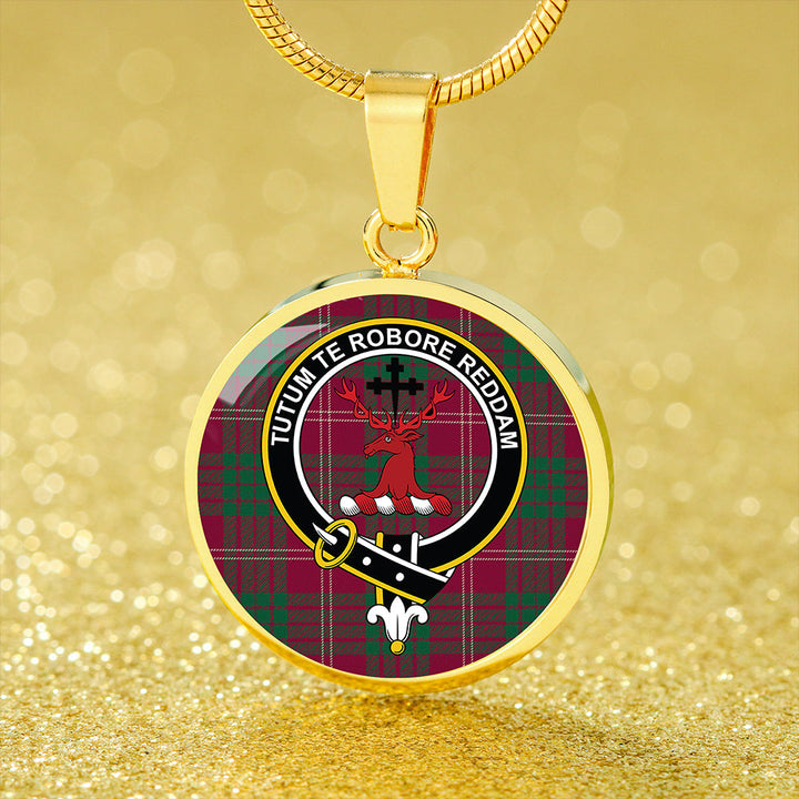 Crawford Red Modern Clan Badge Tartan Classic Circle Necklace