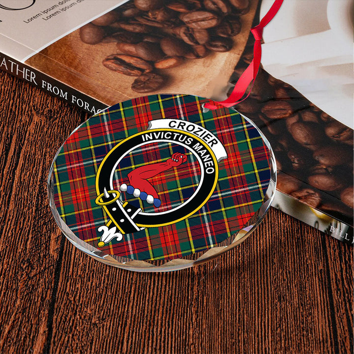 Crozier Modern Clan Badge Tartan Glass Ornament
