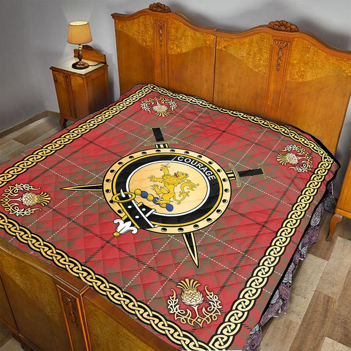 Cumming Weathered Clan Badge Tartan Premium Quilt Celtic Shield