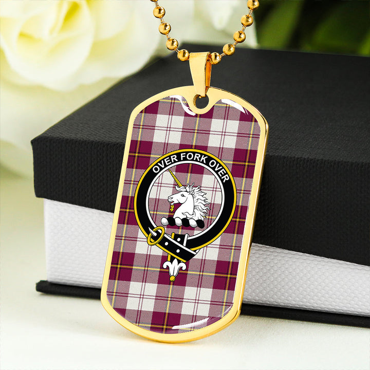 Cunningham Dress Burgundy Clan Badge Classic Tartan Dog Tag Necklace