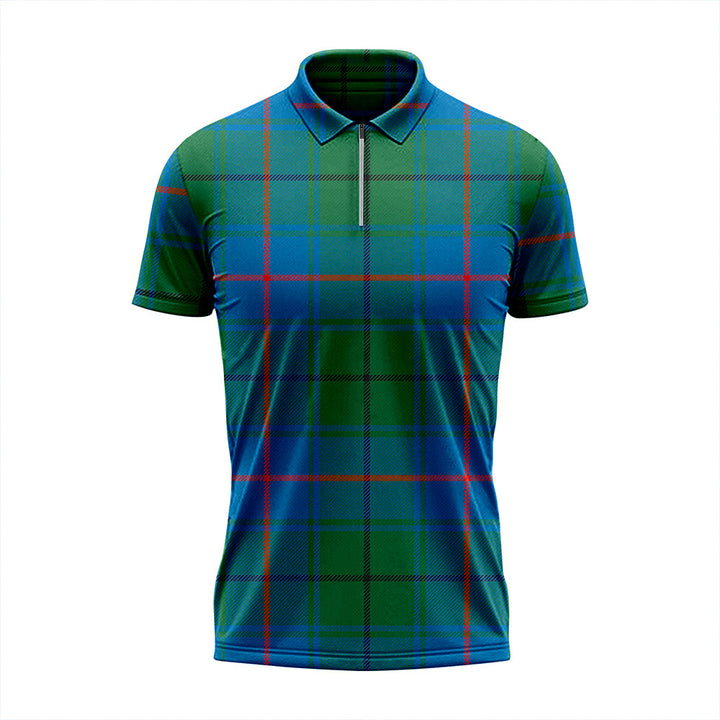 Davidson Half Ancient Tartan Classic Lapel Zip Short Sleeve Polo