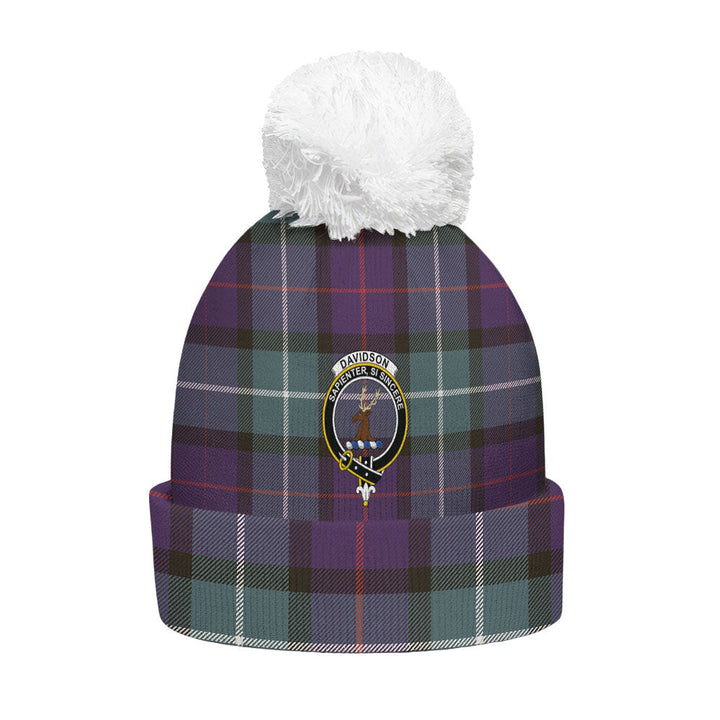 Davidson Weathered Clan Badge Tartan Bobble Beanie Hat