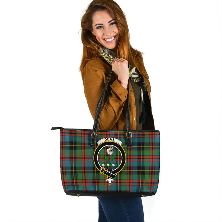 Deas Ancient Clan Badge Tartan Leather Tote Bag