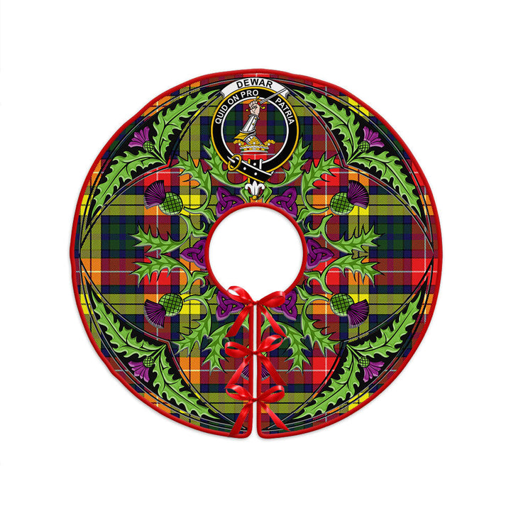 Dewar Clan Badge Tartan Christmas Tree Skirt Scottish Thistle Design