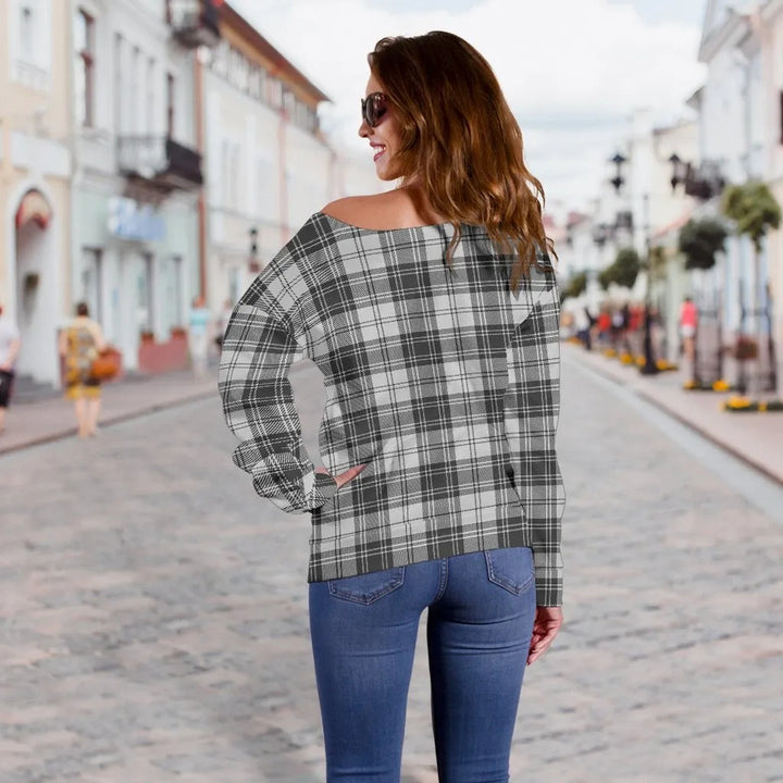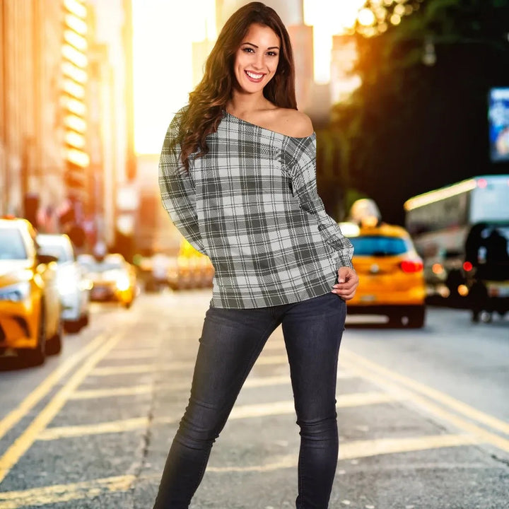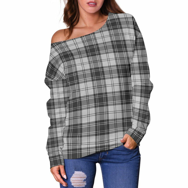 Douglas Grey Modern Tartan Classic Women Off Shoulder Sweatshirt