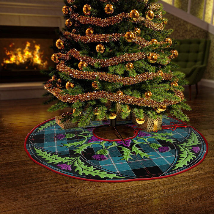 Dunlop Ancient Clan Badge Tartan Christmas Tree Skirt Scottish Thistle Design