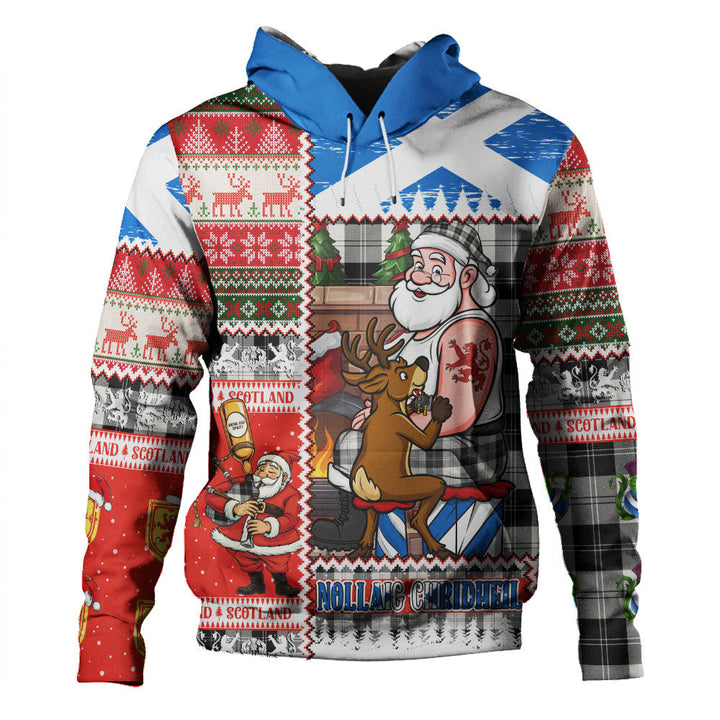 Erskine Black & White Clan Badge Tartan Hoodie Scottish Santa Tattoo Christmas Comic Patchwork Style