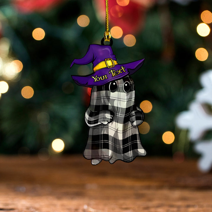 Erskine Black & White Clan Badge Tartan Wood Acrylic Ornament Halloween Ghost Personalized