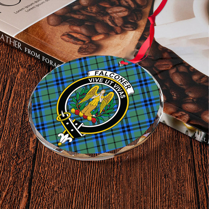 Falconer Clan Badge Tartan Glass Ornament