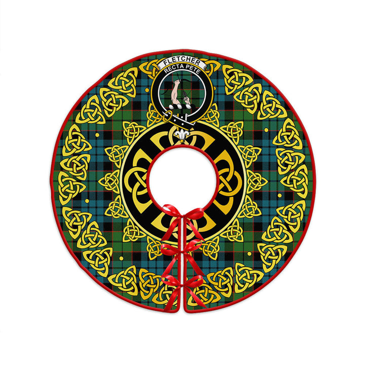 Fletcher Family Ancient Clan Badge Tartan Christmas Tree Skirt Golden Celtic Heritage